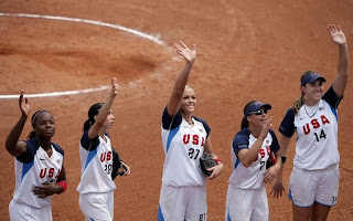 Jennie Finch leaves the field after the loss to Japan in the gold medal softball game at the Beijing 2008 Olympic Games