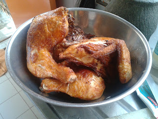 Setelah 40 minit, ayam tadi bolehlah digoreng atau dipanggang.